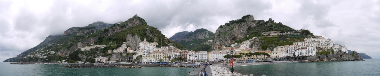 Schließlich erreichen wir den malerischen Kurort Amalfi mit dem prachtvollen, im 10. Jh. erbauten Dom Sant‘ Andrea im Zentrum. Wir schreiten die imposante Freitreppe empor und durch das mächtige byzantinische Bronzetor und besichtigen die Krypta und den angrenzenden Kreuzgang. Gelb und grün leuchten die Majolika-Kacheln der Kuppel in den Himmel. Einst pflegte Amalfi reiche Handelsbeziehungen im gesamten Mittelmeerraum, ehe 1343 Teile der Stadt nach einer Sturmflut im Meer versanken und die alte Schiffswerft aus dem 11. Jh. zur Hälfte zerstört wurde. Wir flanieren durch romantische Gässchen und blicken vom Ende der Mole aus Richtung der in malerischer Lage am Hang gelegenen Häuser und Paläste.